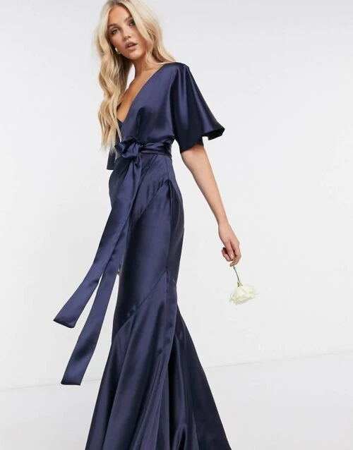 Dorothy Perkins Square Neck Embellished Pleated Maxi ​Bridesmaid Dress, Light Blue