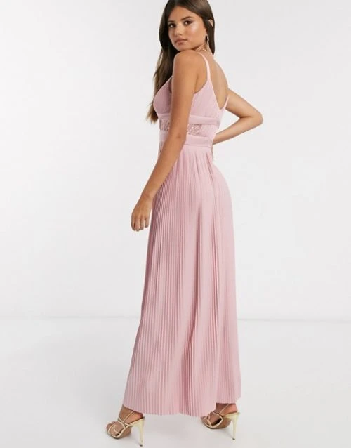 The beautiful pink Premium Fuller Bust lace and pleat bardot maxi dress from ASOS Design is a guaranteed head-turner, you’ll find this piece as feminine as it is timeless. It features a V neckline, a stunning silhouette, a cinched in waist and lace insert. Perfect for a bridesmaid this season.