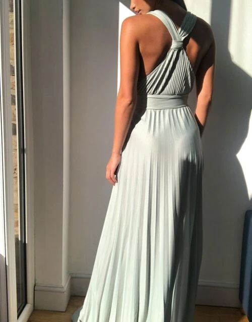 Dorothy Perkins Square Neck Embellished Pleated Maxi ​Bridesmaid Dress, Light Blue