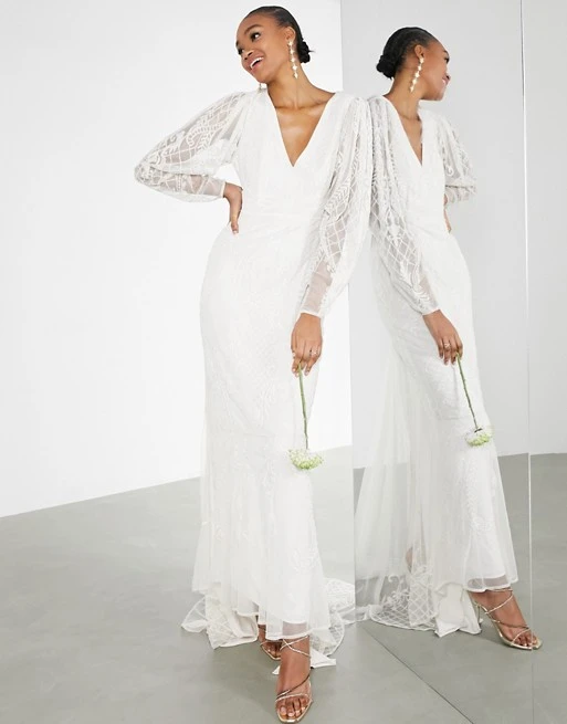 Dorothy Perkins Square Neck Embellished Pleated Maxi ​Bridesmaid Dress, Light Blue