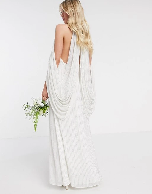 Dorothy Perkins Square Neck Embellished Pleated Maxi ​Bridesmaid Dress, Light Blue