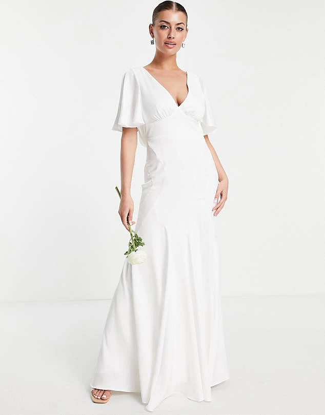 Dorothy Perkins Square Neck Embellished Pleated Maxi ​Bridesmaid Dress, Light Blue