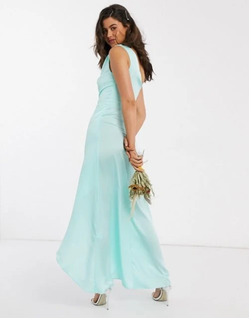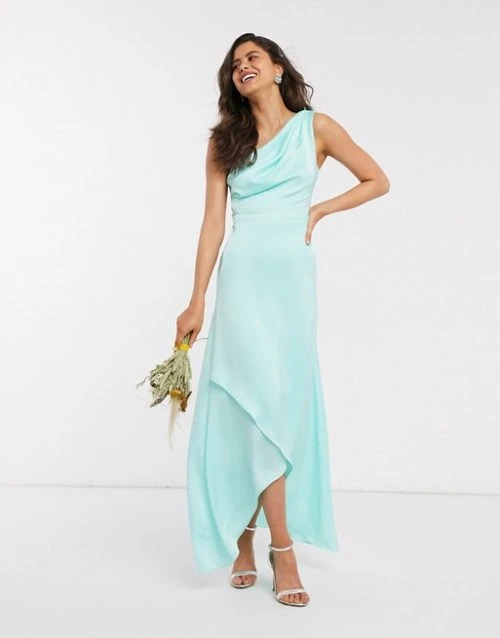 The beautiful mint TFNC Bridesmaid one shoulder maxi dress from Asos Edition is a guaranteed head-turner, you’ll find this piece as feminine as it is timeless. It features a one shoulder neckline, a stunning silhouette, and cinched in waist. Perfect for a bridesmaid this season.