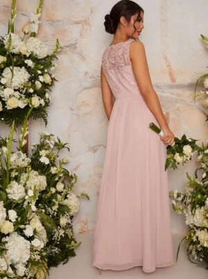 Monsoon Faye Embellished Maxi Dress In Recycled Polyester Pink