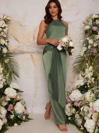 Are you looking for bridesmaid dresses to flatter your whole bride tribe? Well look no further as this dress is here to save the day! A satin maxi maxi dress with pleated detailing will ensure a flattering figure for every body shape and the beautiful green hue is ideal for a spring or summer wedding!