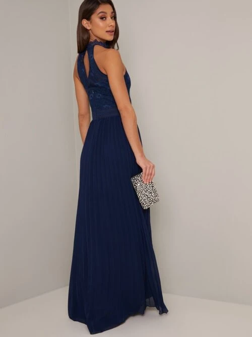 Define evening elegance with the Ricki Dress, a beautiful lace bodice is perfectly paired with a fully plated floaty maxi skirt ensuring you will float across any room