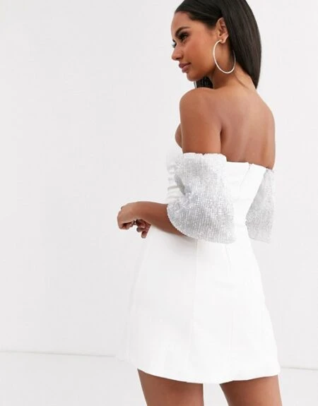 If you are looking for a cute hen do vibe, or a versatile summer dress that will be perfect for any event this summer – you have just found it! The gorgeous white sequin balloon sleeve shift will make this your go-to look this season.