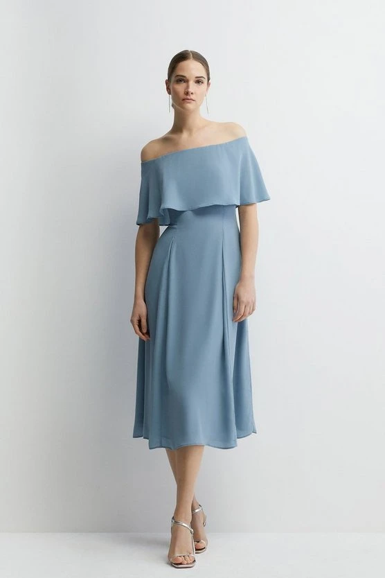 Stunning Coast pale blue Bardot Woven Bridesmaids Midi Dress, perfect for a modern bridesmaid.
