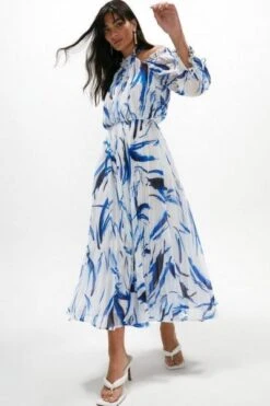 Special occasions have met their match in the form of Coast’s beautiful white and blue Cold Shoulder Pleated Midaxi Dress. This comfy cotton design makes dressing up an utter joy.