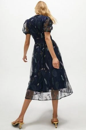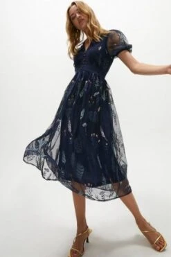 Special occasions have met their match in the form of Coast’s beautiful navy Embroidered Mesh V Neck Dress. This comfy design makes dressing up an utter joy.