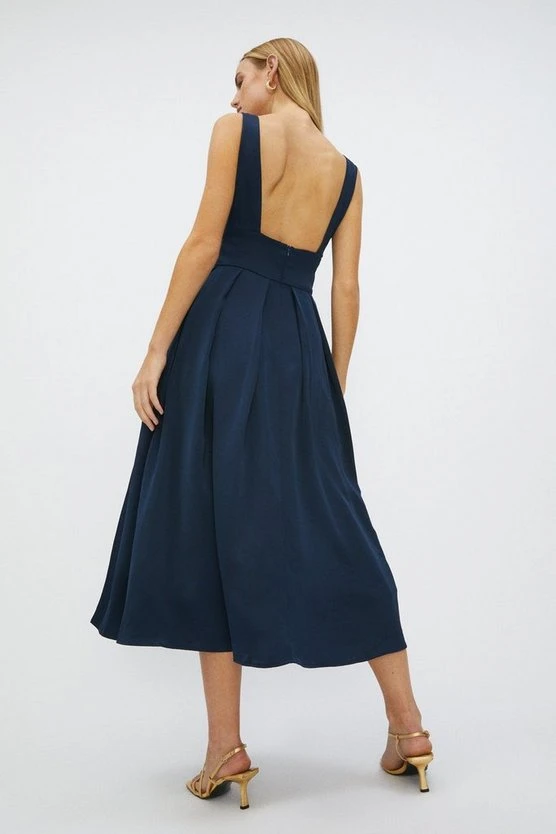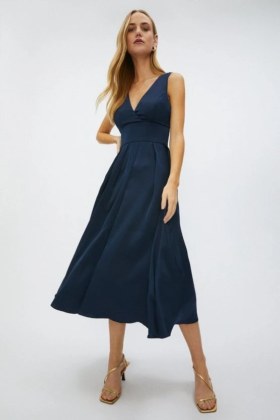 Make the aisle your catwalk in this swishy satin midi dress. Fitted with a plunging V-neckline and nipped-in waist, it was made to steal the spotlight at spring weddings.