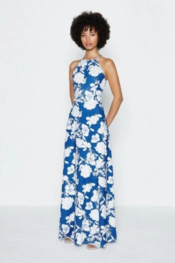 Stunning blue and white Halter Floral Printed Maxi Dress from Coast, ideal for your summer occasions.