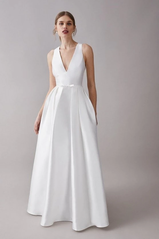 Beautiful ivory Halter Neck Mini Bow Maxi Dress With Pockets.