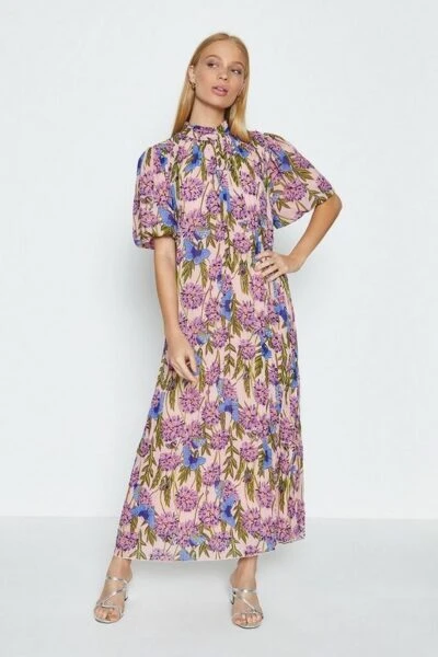 Consider this stunning pink and blue High Neck Floral Print Midi Dress from Coast your faithful friend this season. This piece features a round neckline and all pretty floral print. Perfect summer time dress.
