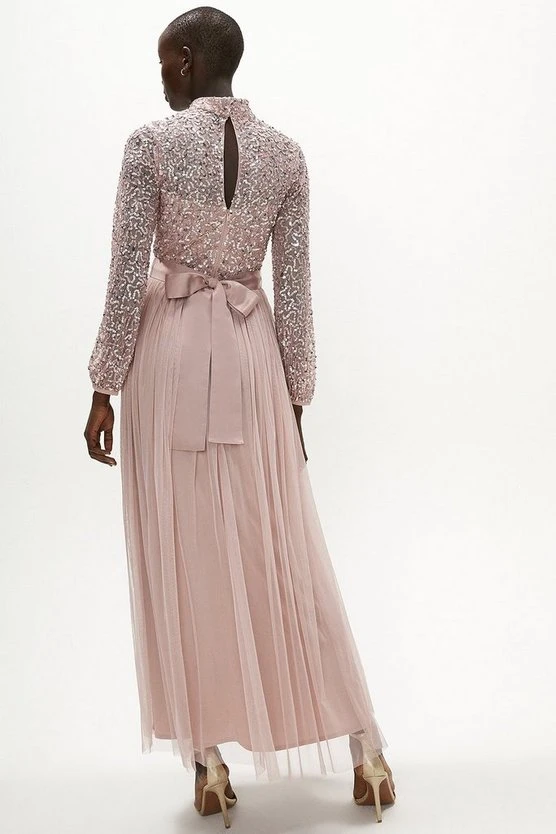 You deserve a princess moment – so Coast have made you this stunning blush dress. Make your entrance in Coast’s ultra-SPARKLY maxi dress. Featuring a beautiful sequinned bodice, high neckline sleeves and tulle skirt.