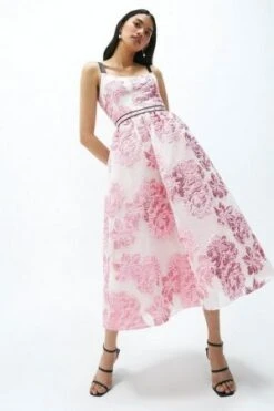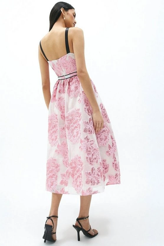 Special occasions have met their match in the form of Coast’s beautiful pink Jacquard Tipping Detail Midi Dress. This structured A-line design makes dressing up an utter joy.