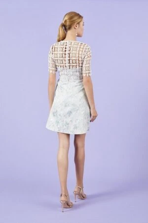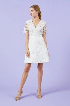 You won’t be hard to spot in this elegant light grey Lace And Jacquard A-Line Dress from Coast, in a flattering style make this the must have piece for the summer, ideal for dressing up or down!