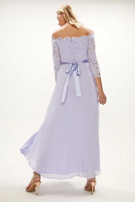 Designed to be worn for years (and years) to come, this dress is the definition of timeless beauty. The gown comes complete with a scallop-trim Bardot bodice, ribbon sash bow at the waist and ultra-gorgeous pleated skirt.