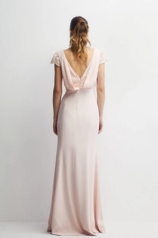 The beautiful blush Lace Detail Sculpting Crepe Fishtail Bridesmaids Dress from Coast is perfect for a modern bridesmaid.