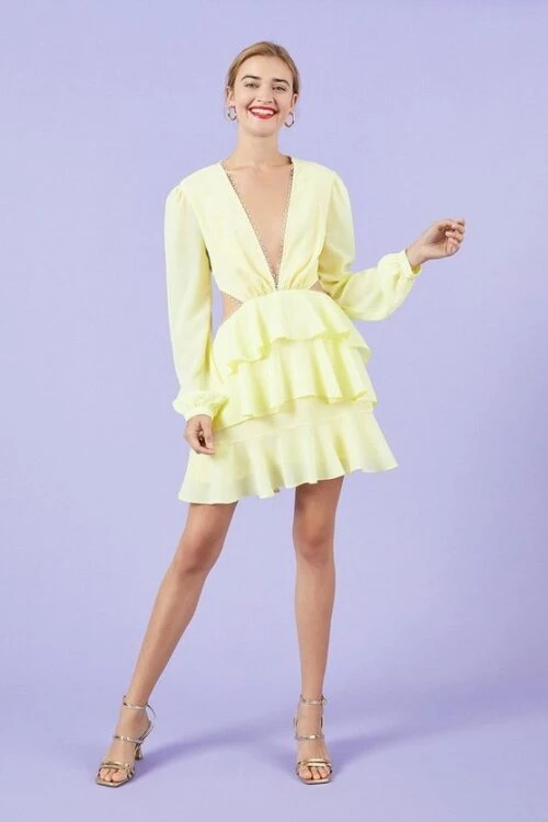 You wonโt be hard to spot in this gorgeous lemon Long Sleeve Cutout Lace Trim Skater Dress from Coast, in a flattering style make this the must have piece for the summer, ideal for dressing up or down!