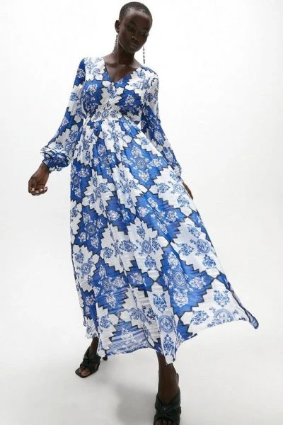 Special occasions have met their match in the form of Coast’s beautiful white and blue Long Sleeve Shirred Waist Maxi Dress. This comfy cotton design makes dressing up an utter joy.