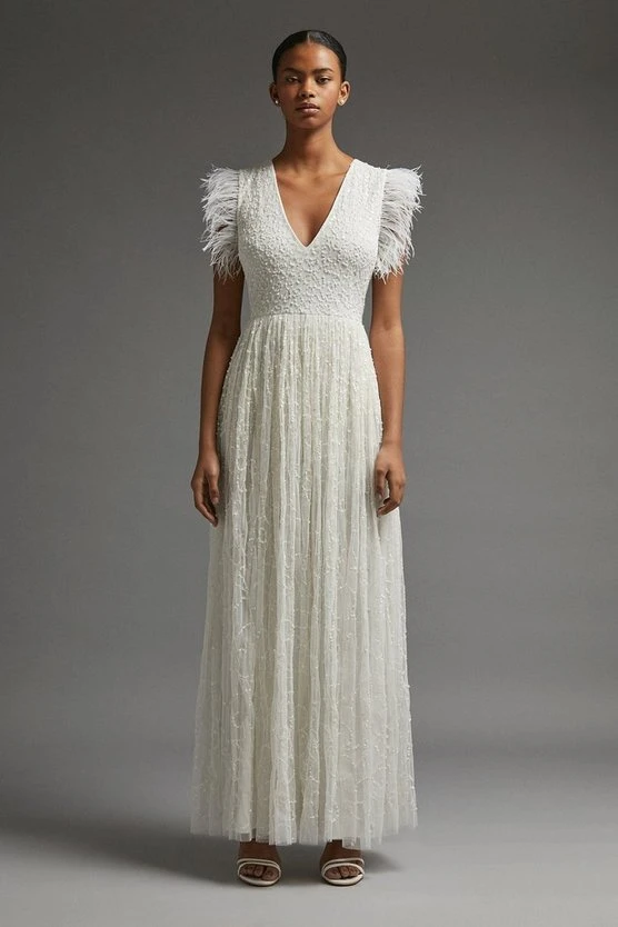 Dorothy Perkins Square Neck Embellished Pleated Maxi Bridesmaid Dress, Light Blue