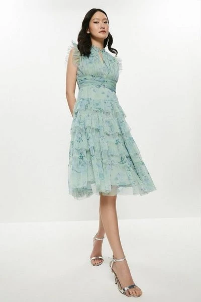 Bridesmaids like you’ve never seen them before. This beautiful green bridesmaid dress is part of our brand-new inclusive collection, The Modern ‘Maid. With its premium fabric, quality craftsmanship and high neckline, this floral short dress is designed for the ultimate bridal party.