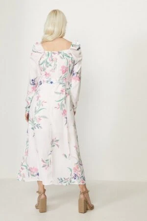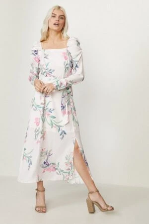 Ted Baker DEYJA Graduated Midi Dress With Ruched Puff Sleeves, Purple/Multi
