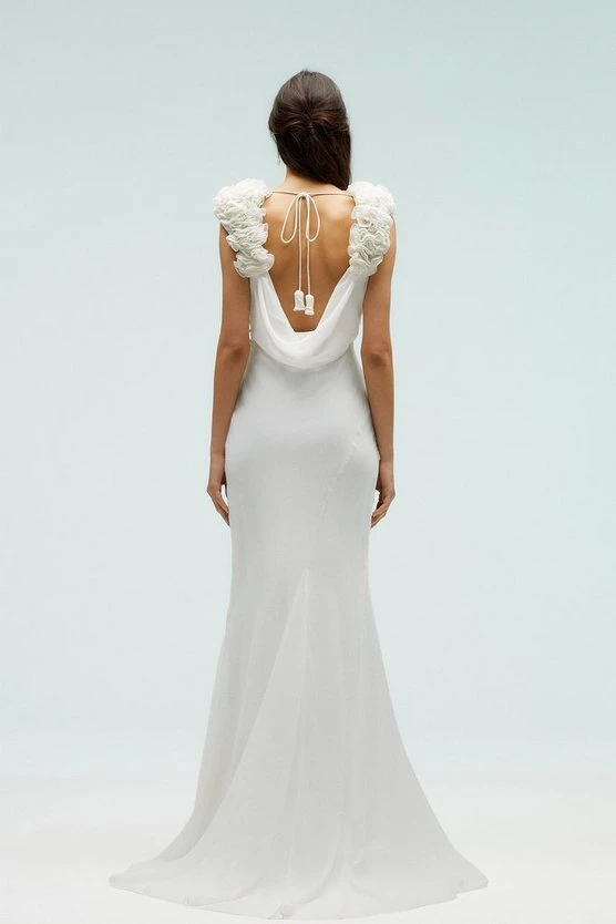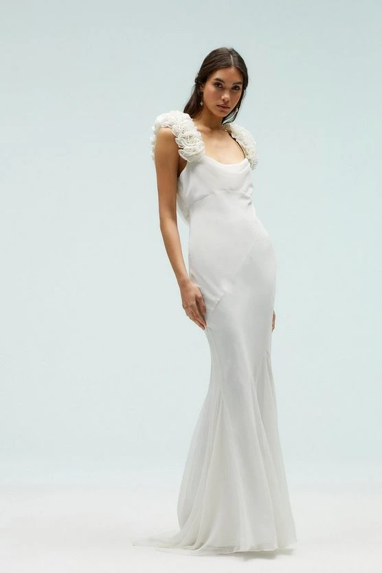 Beautiful ivory Statement Blossom Floral Scoop Back Maxi Dress, ideal for a modern bride.