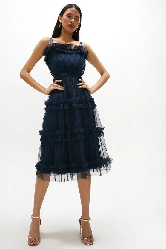 Dorothy Perkins Square Neck Embellished Pleated Maxi ​Bridesmaid Dress, Light Blue