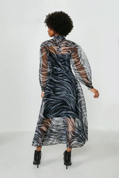 Roam the urban jungle in this eye-catching zebra print dress. The elegant way to do animal print, itβs imagined in sheer organza and finished with long sleeves and a sash belt for a sleek silhouette.