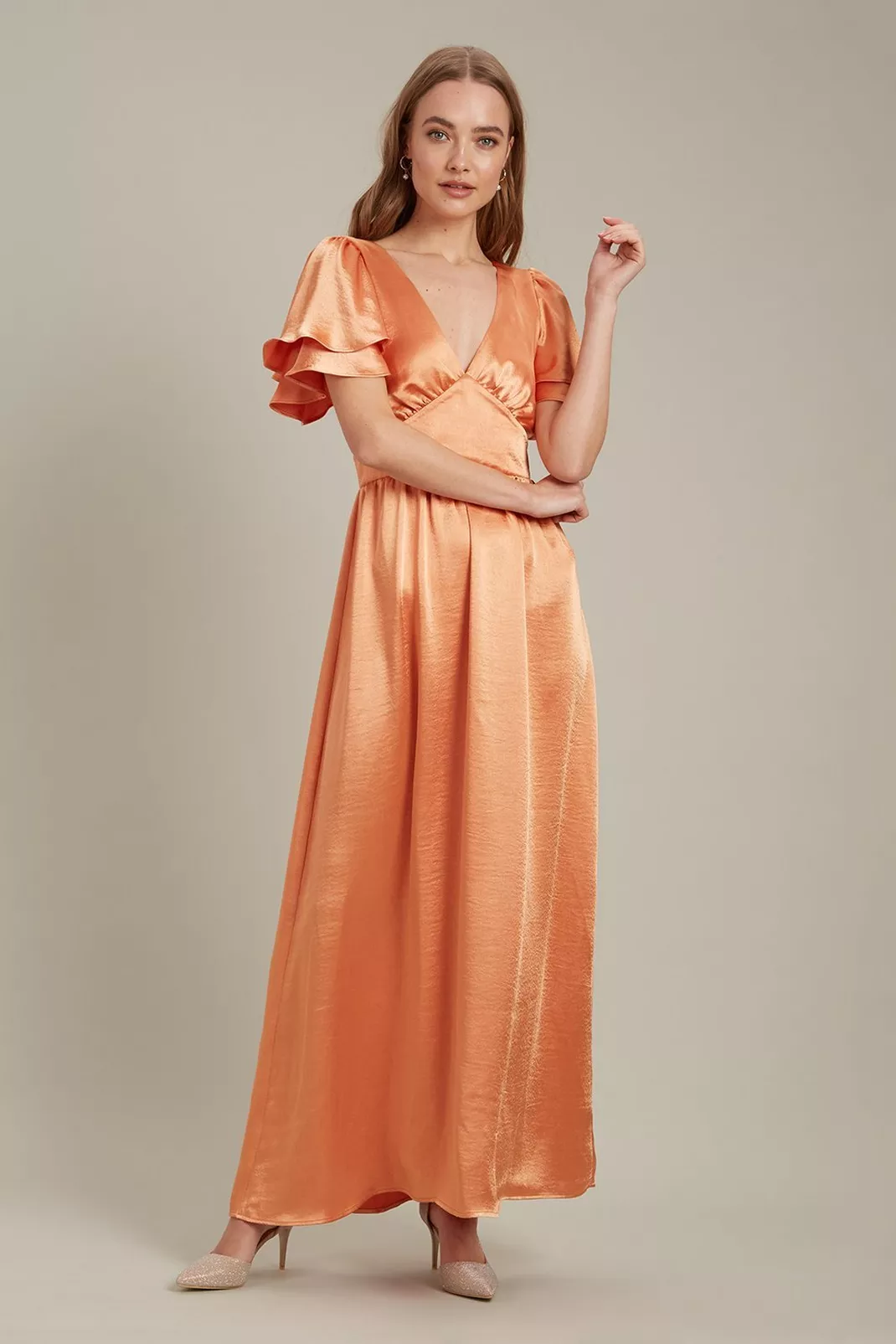 Satin Double Frill Sleeve Maxi Dress. 100% Viscose. Machine Washable.