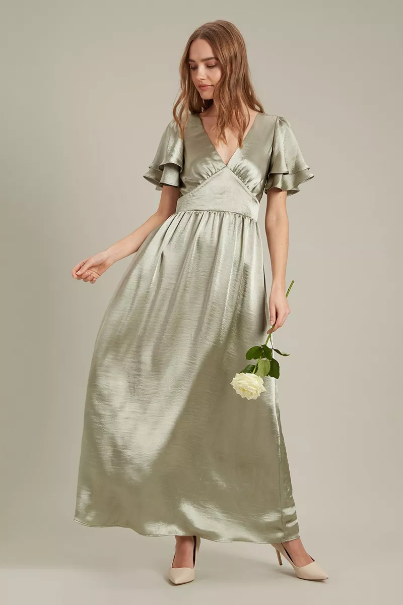 - Style: Satin Frill Sleeve Maxi Dress
