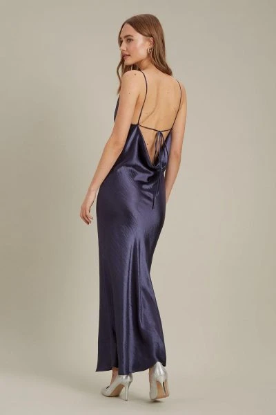 Bridal Collection. Satin Maxi Tie Back Slip Dress. 100% Viscose. Machine Washable.