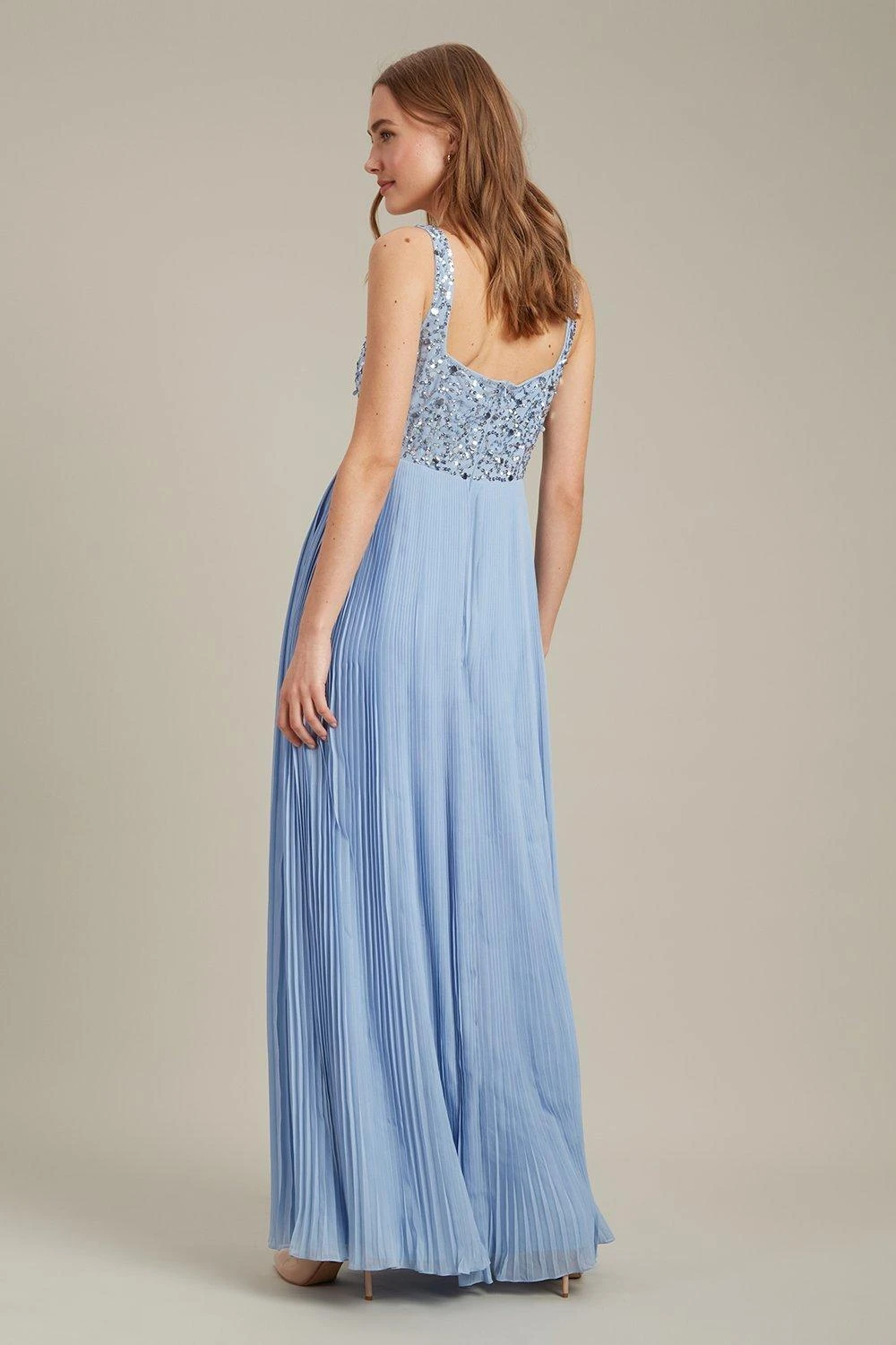 Square Neck Embellished Pleated Maxi. 100% Polyester. Cool hand wash only.