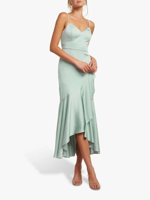 In dreamy satin, this frilled midi dress from Forever New will be a favourite for weddings and events. Team yours with barely-there nude heels and a matching clutch for a look that’s simple and chic.