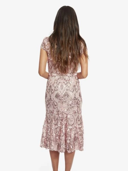 Coast Lisa Tan Premium Hand Embellished Midi Dress, Blush Pink/Multi