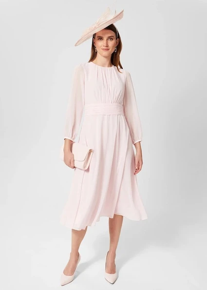 In a beautiful shade of pale pink, the Arianne dress will make an effortless statement at weddings, the races, and more.