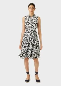Ted Baker DEYJA Graduated Midi Dress With Ruched Puff Sleeves, Purple/Multi