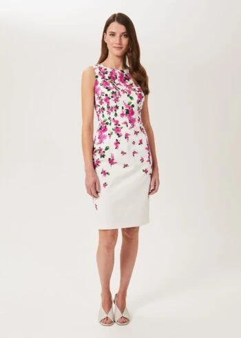 Coast Lisa Tan Premium Hand Embellished Midi Dress, Blush Pink/Multi
