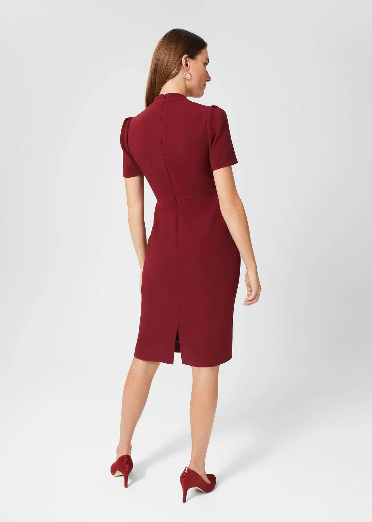 RIch burgundy, sculpting seams and light-catching embellishments combine in the timelessly chic Isla shift dress.