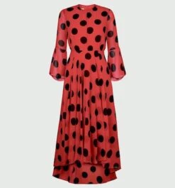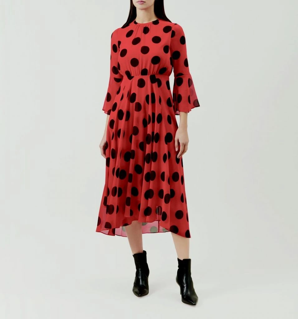 Hobbs Lilia Spot Print Sleeve Dress, Red/Black