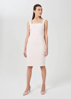 Coast Lisa Tan Premium Hand Embellished Midi Dress, Blush Pink/Multi