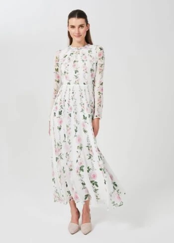 Coast Lisa Tan Premium Hand Embellished Midi Dress, Blush Pink/Multi
