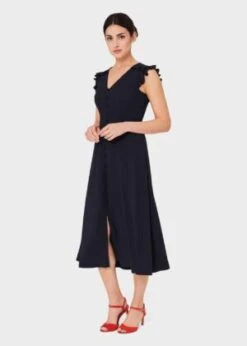 Ted Baker DEYJA Graduated Midi Dress With Ruched Puff Sleeves, Purple/Multi