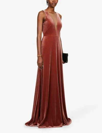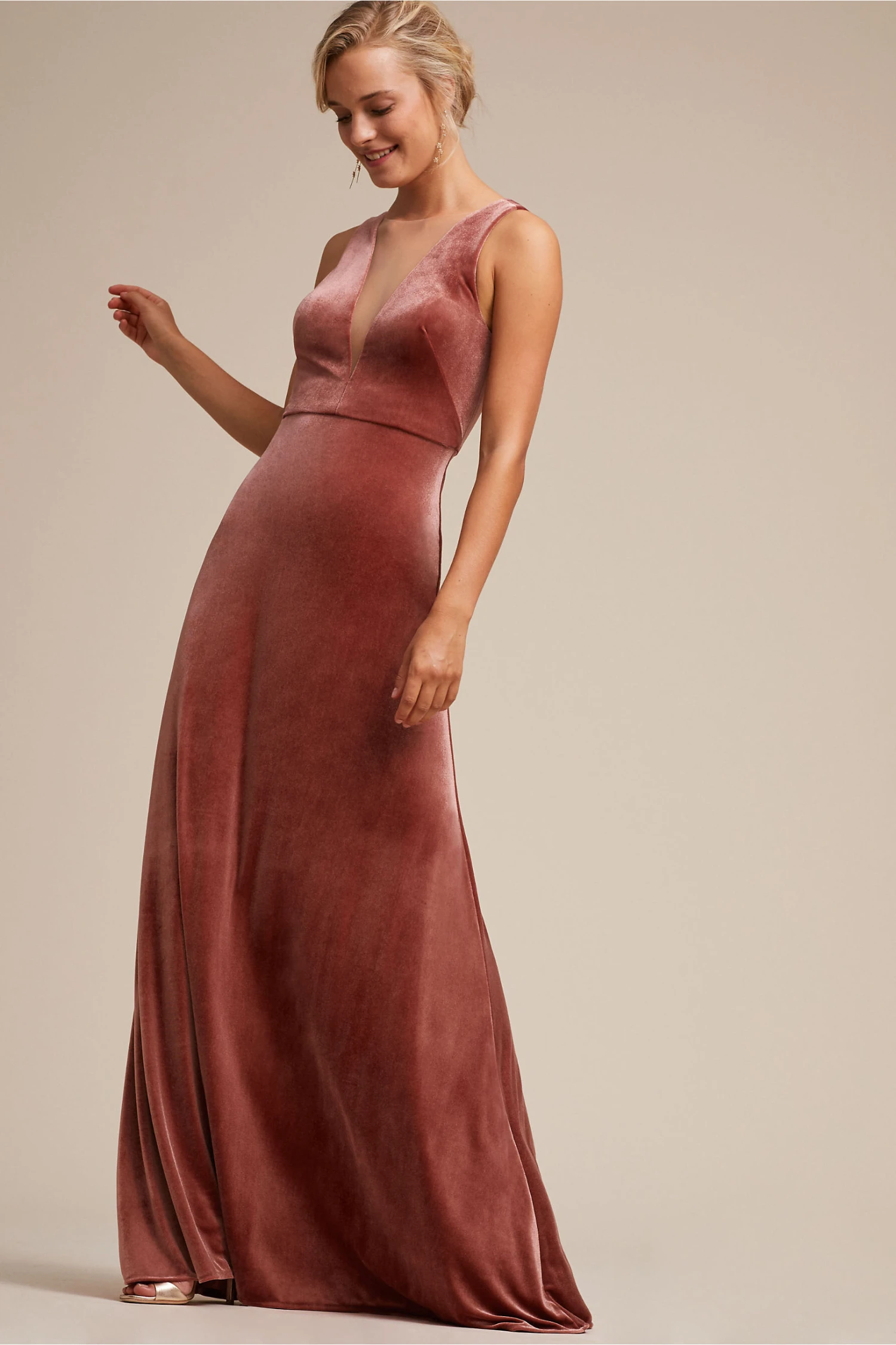 Chic plunging v neck with nude illusion tulle for a fitted bodice. The deep v open back draws attention to the smallest part of the waist, creating a flattering, soft a line silhouette. Perfect for a modern bridesmaid.