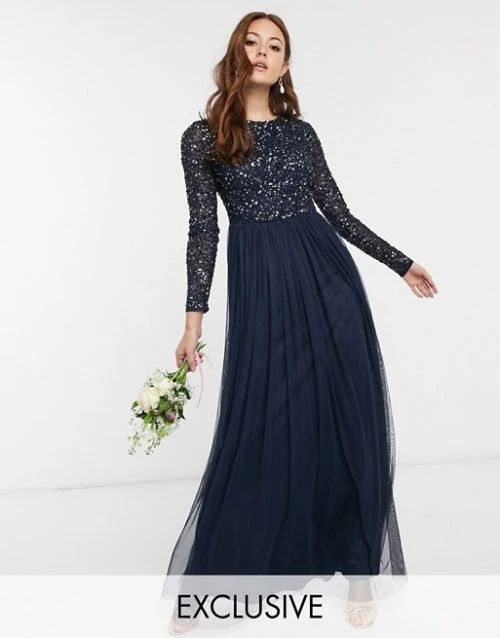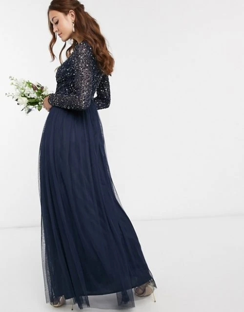 The stunning navy sequin embellished maxi dress from Maya is perfect for a bridesmaid, featuring a round neckline and cinched in waist. The feminine sequin bodice and tulle maxi skirt adds the perfect finishing touch. Team with heels and a slim clutch for ultimate elegance.