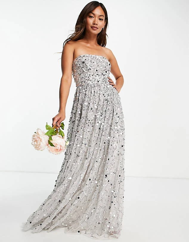 Dorothy Perkins Square Neck Embellished Pleated Maxi Bridesmaid Dress, Light Blue
