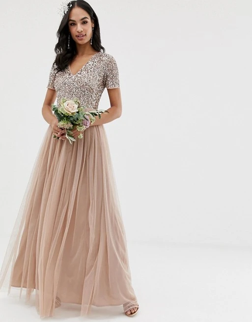 Coast Lisa Tan Premium Hand Embellished Midi Dress, Blush Pink/Multi