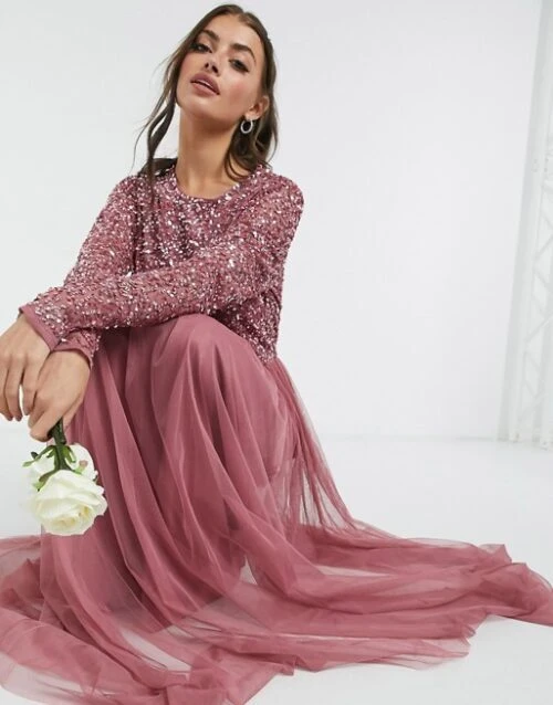 Monsoon Faye Embellished Maxi Dress In Recycled Polyester Pink